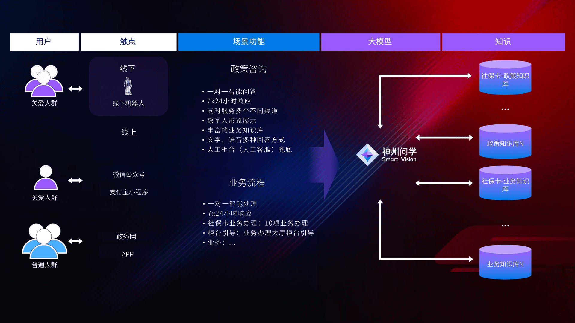 • 线上线下全覆盖:线上提供微信公众号、、支付宝小程序、、、政务网、、app多种渠道,,,与线下机器人形成完整服务体系。。。